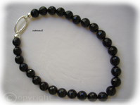 con sfera mm 14 sfaccetta n°28 - ovali twist in onice nera mm 40 x 21 - rondelle argento 925 n°4 gr 0,5 - chiusura ovale con campane mm 50 x 16.