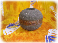 Portacandela in pietra lavica con applicazione cintura in rame con decorazione greca.Manufatto eseguito da abili artigiani Balinesi.